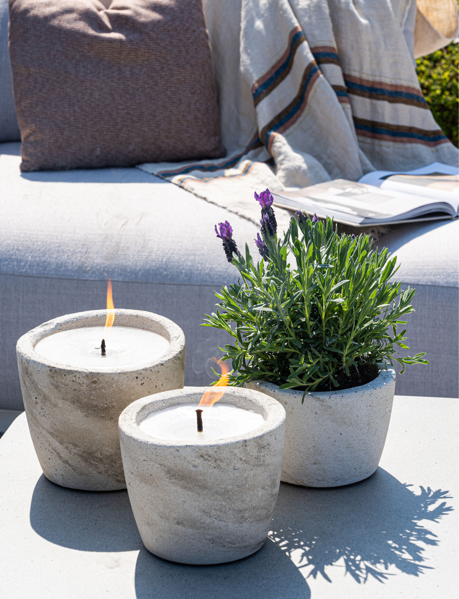 Our outside candles have a melt resistance of 60 degrees Celsius. So you can leave them outside during hot summer days.