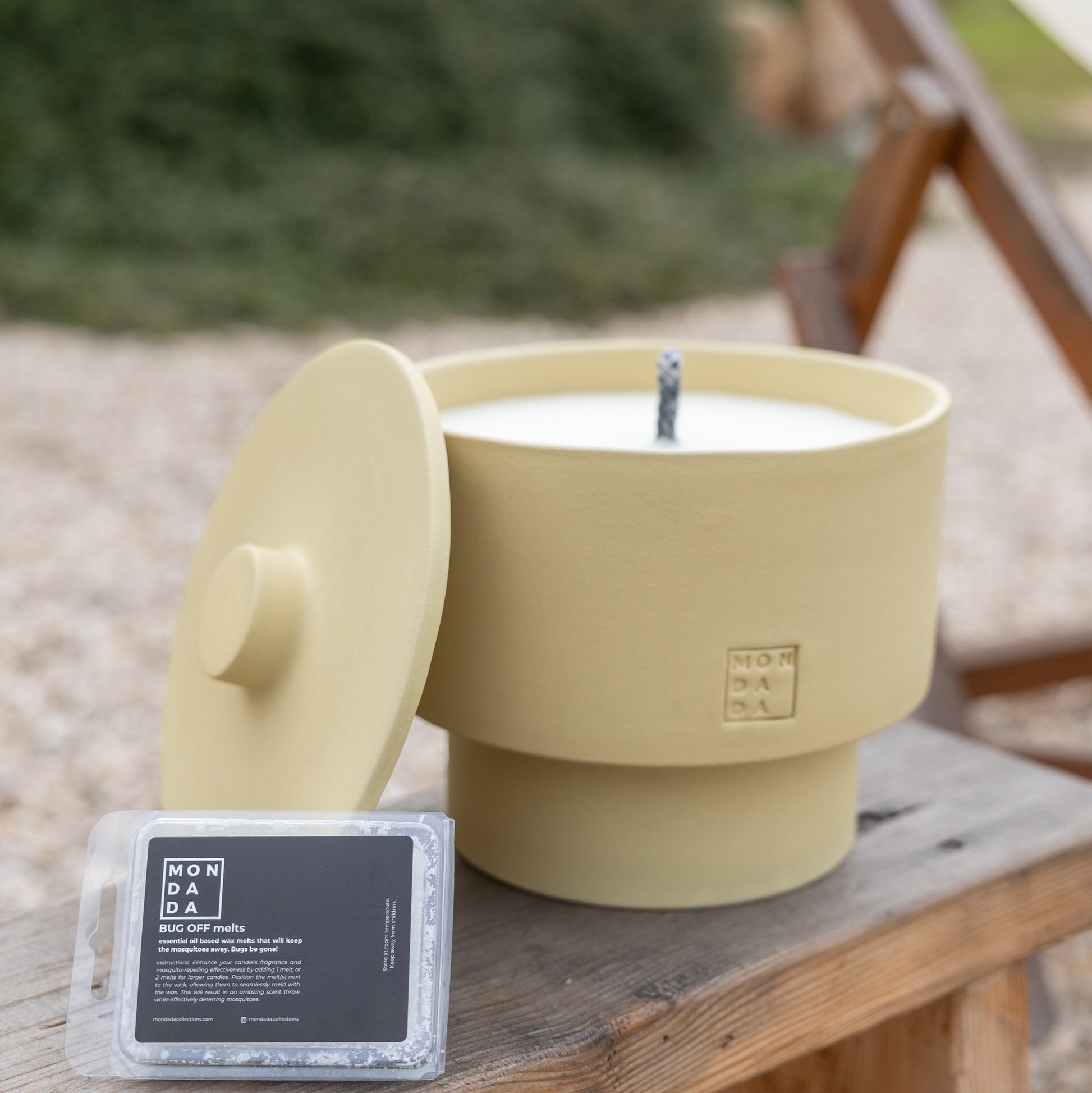 Lors de la première combustion, veillez à ce que la cire fonde jusqu'aux bords du pot. Cela permet d'éviter la formation de tunnels et de prolonger la durée de vie de la bougie!