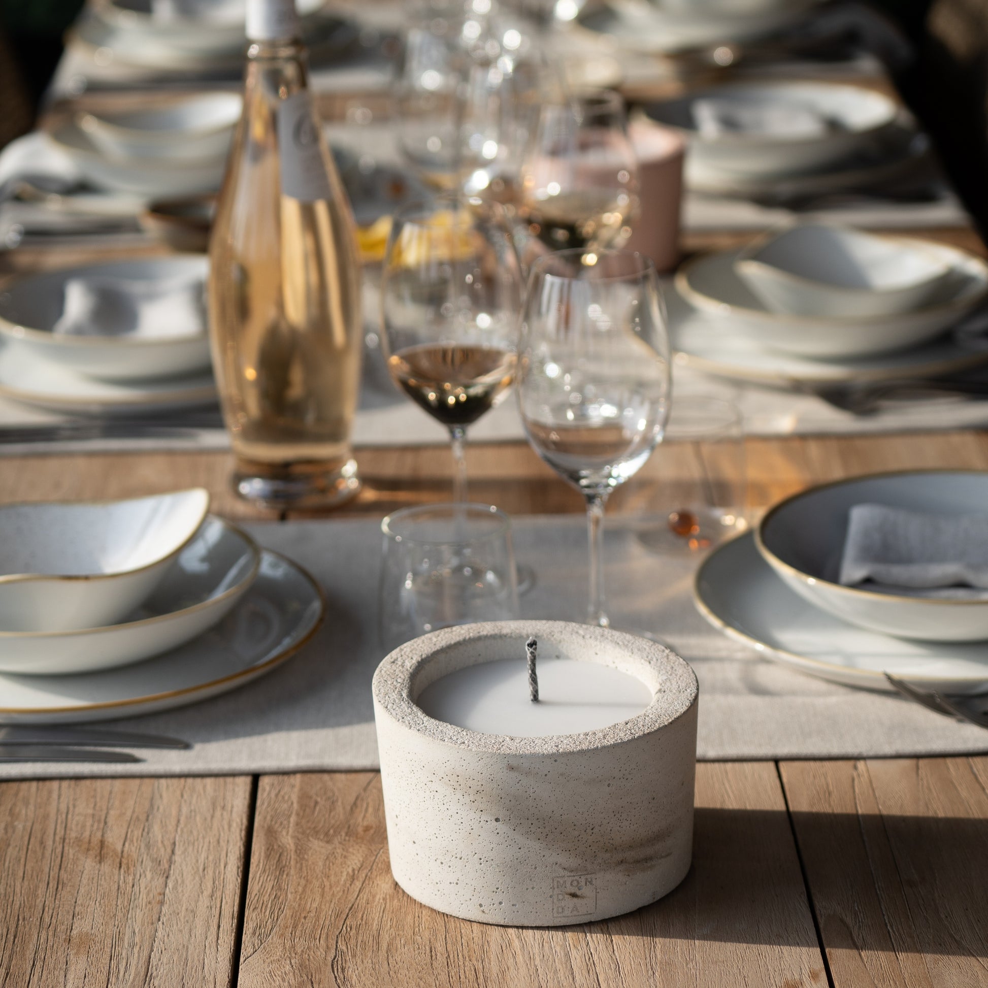 Bougie d'extérieur en béton faite à la main pour un usage extérieur uniquement.