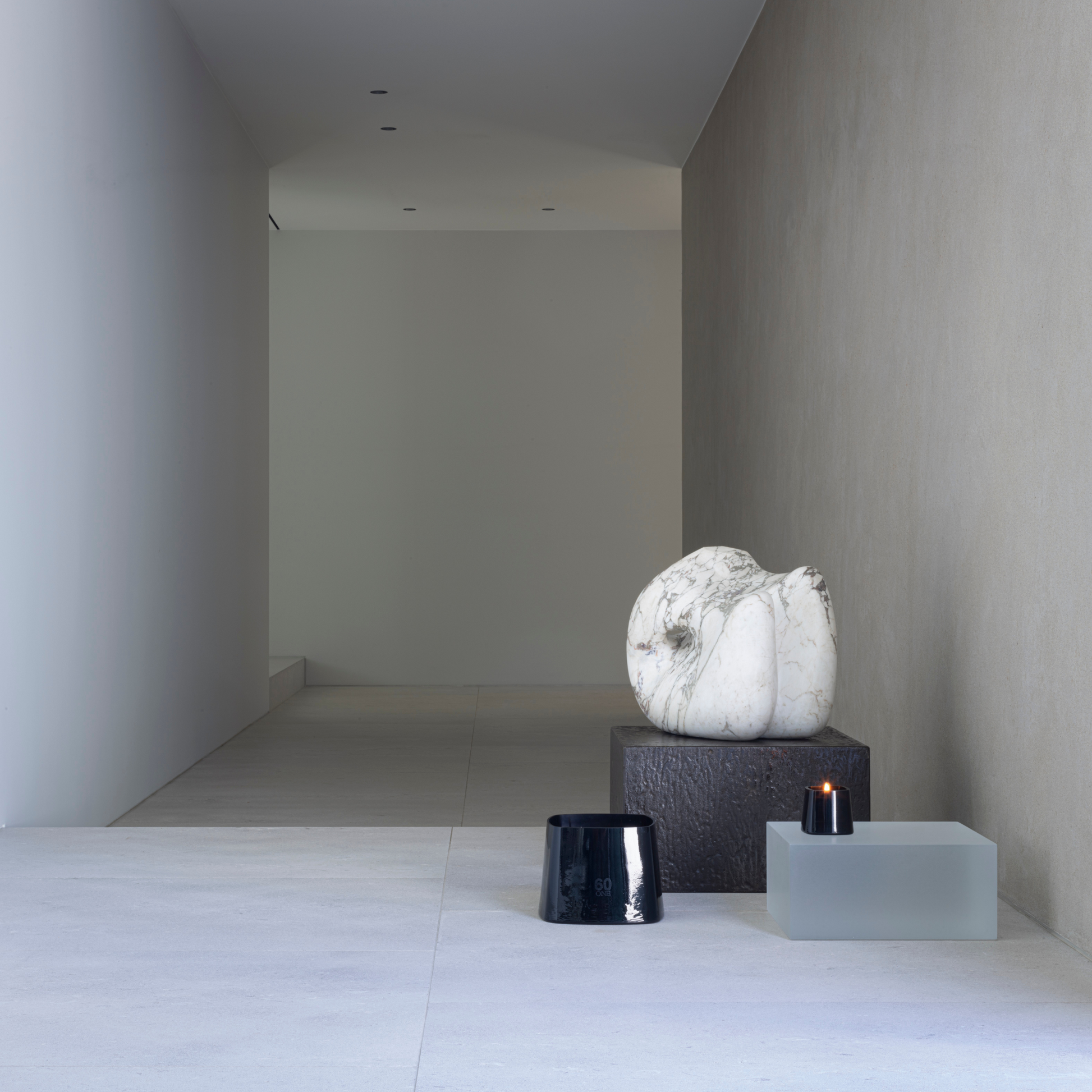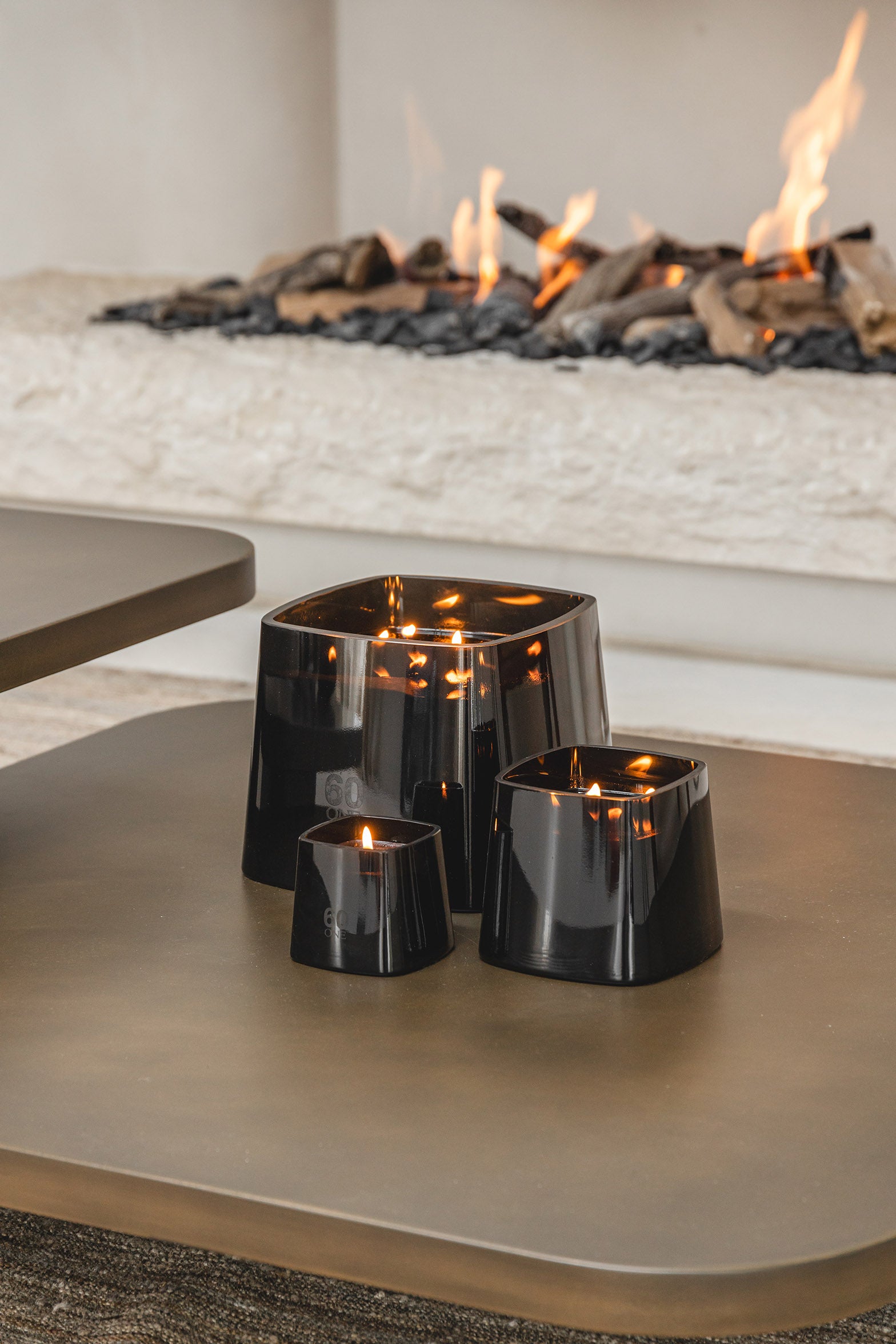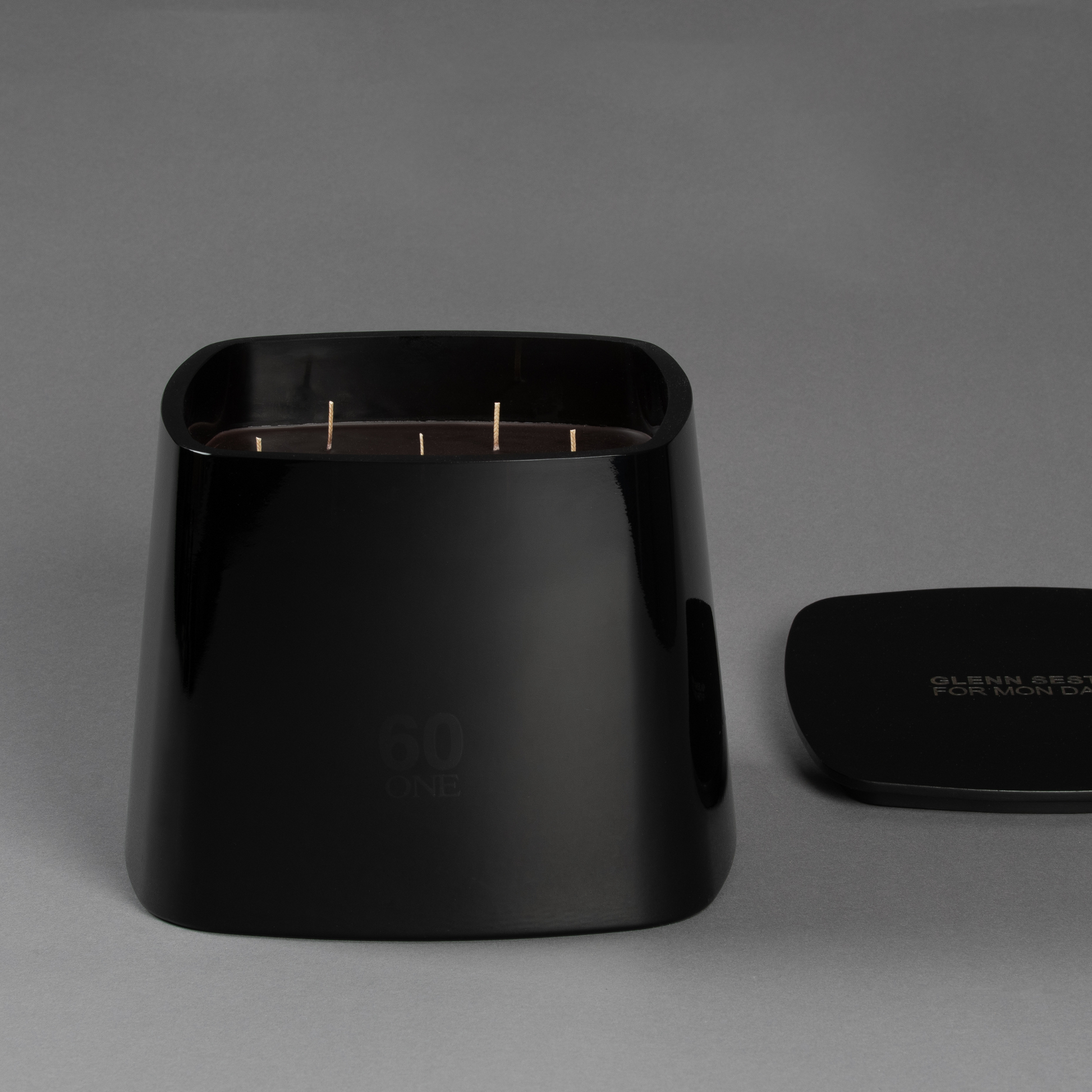De ultieme eyecatcher uit de collectie van Glenn Sestig. Een indrukwekkende zwart getinte kaars in iconisch mondgeblazen glas, ontworpen door architect Glenn Sestig.