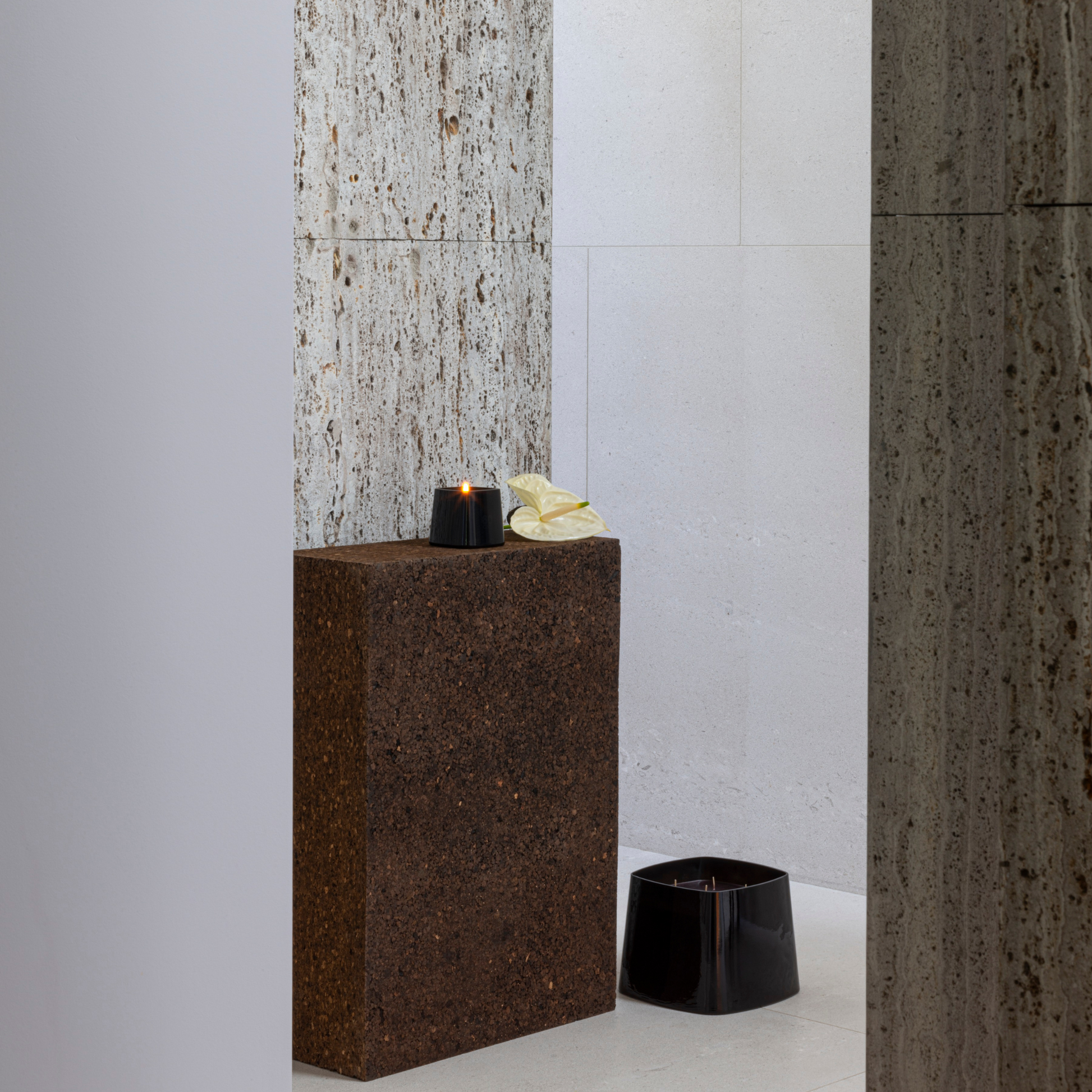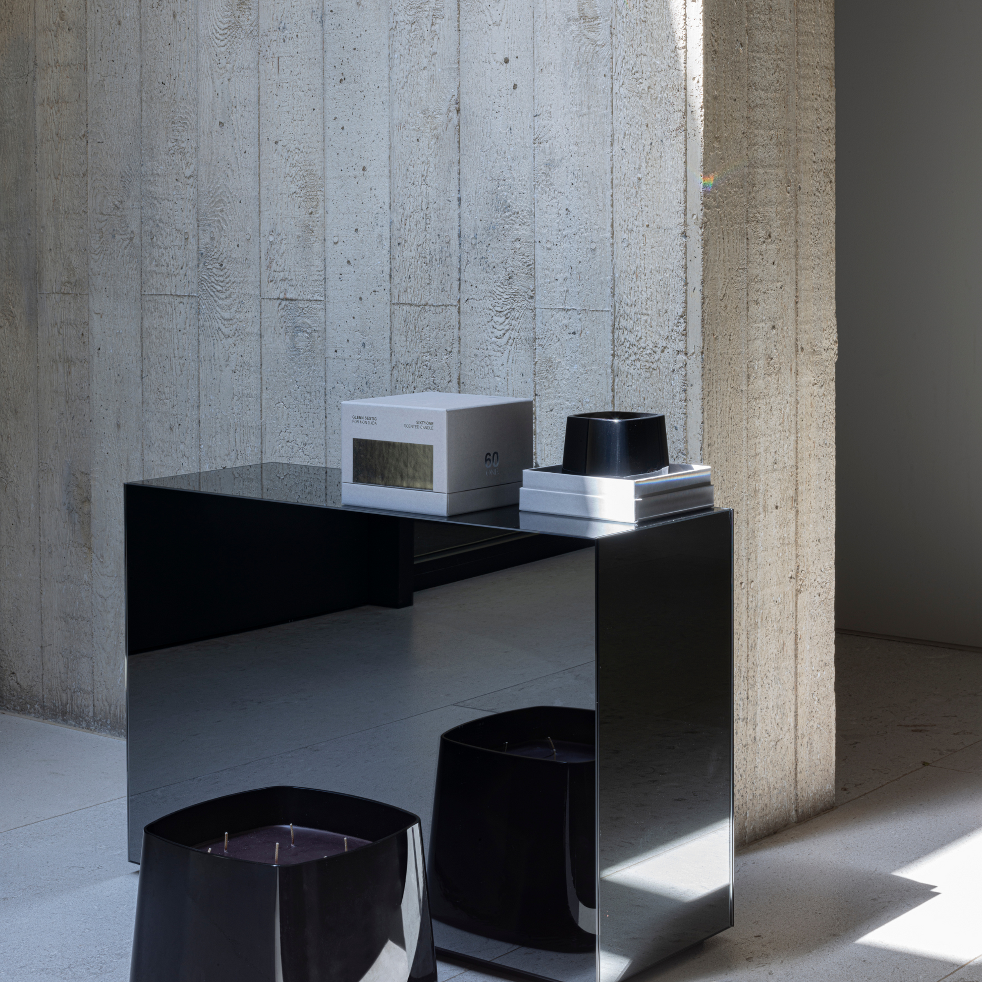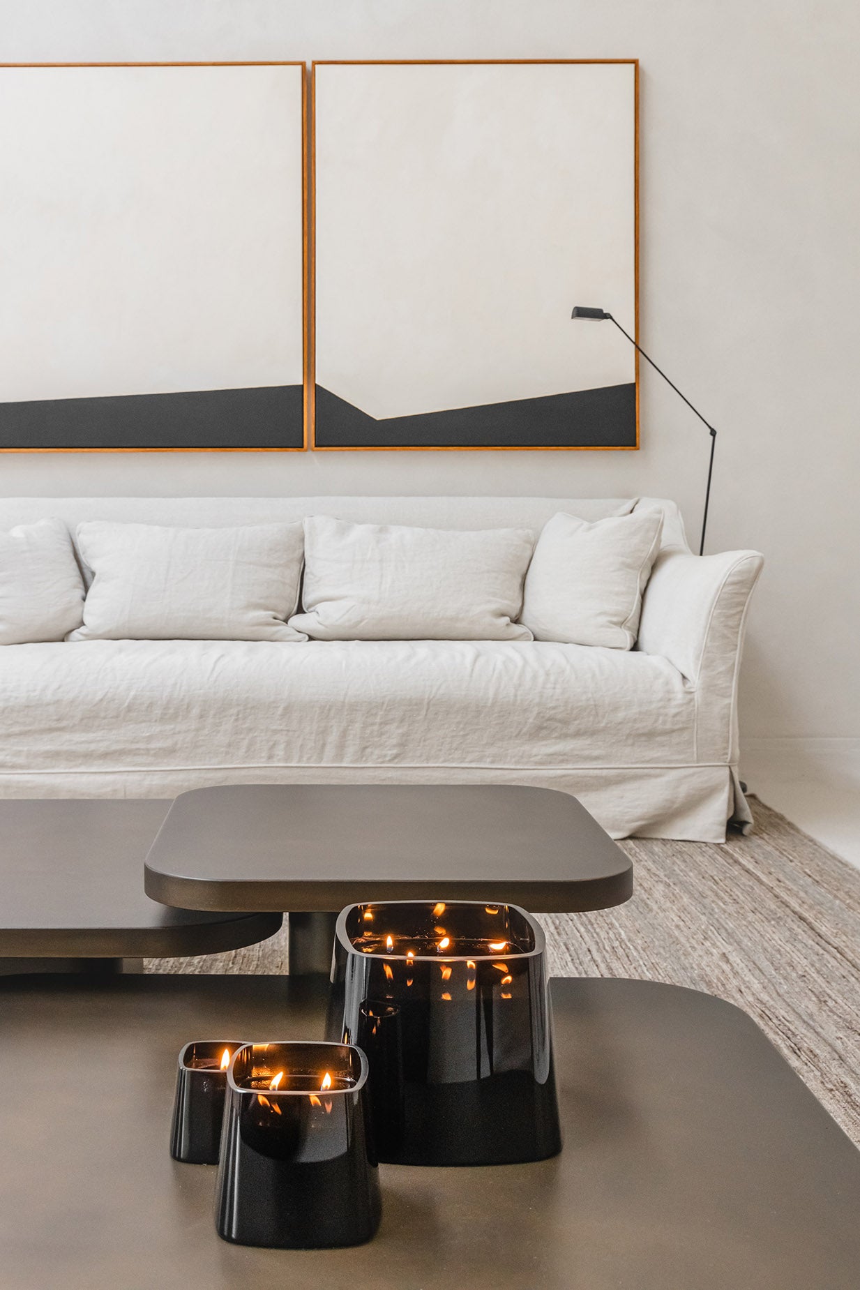 De ultieme eyecatcher uit de collectie van Glenn Sestig. Een indrukwekkende zwart getinte kaars in iconisch mondgeblazen glas, ontworpen door architect Glenn Sestig.