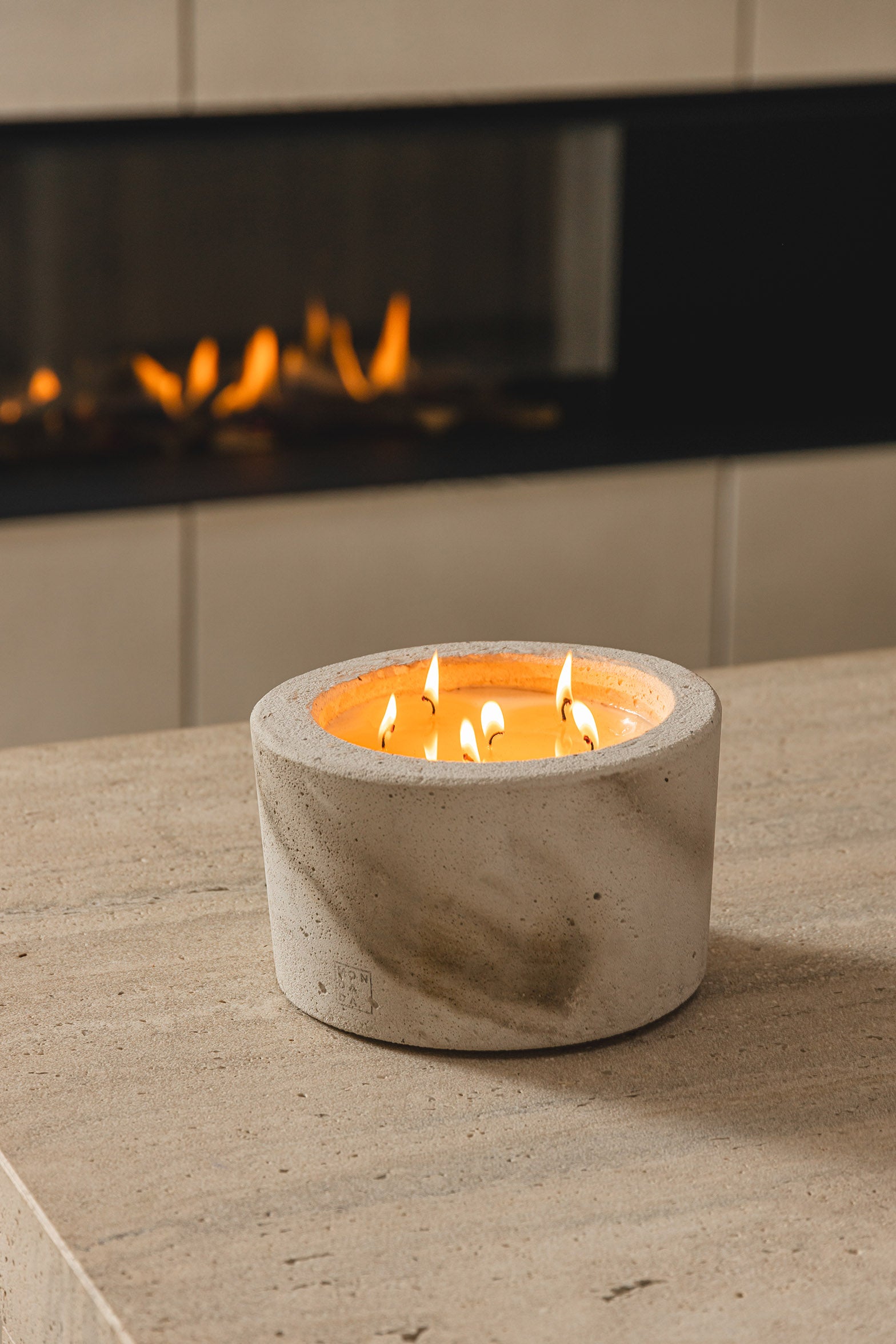 Handmade concrete fragrance candle for indoor use. All our indoor concrete candles come in a luxury wooden giftbox.