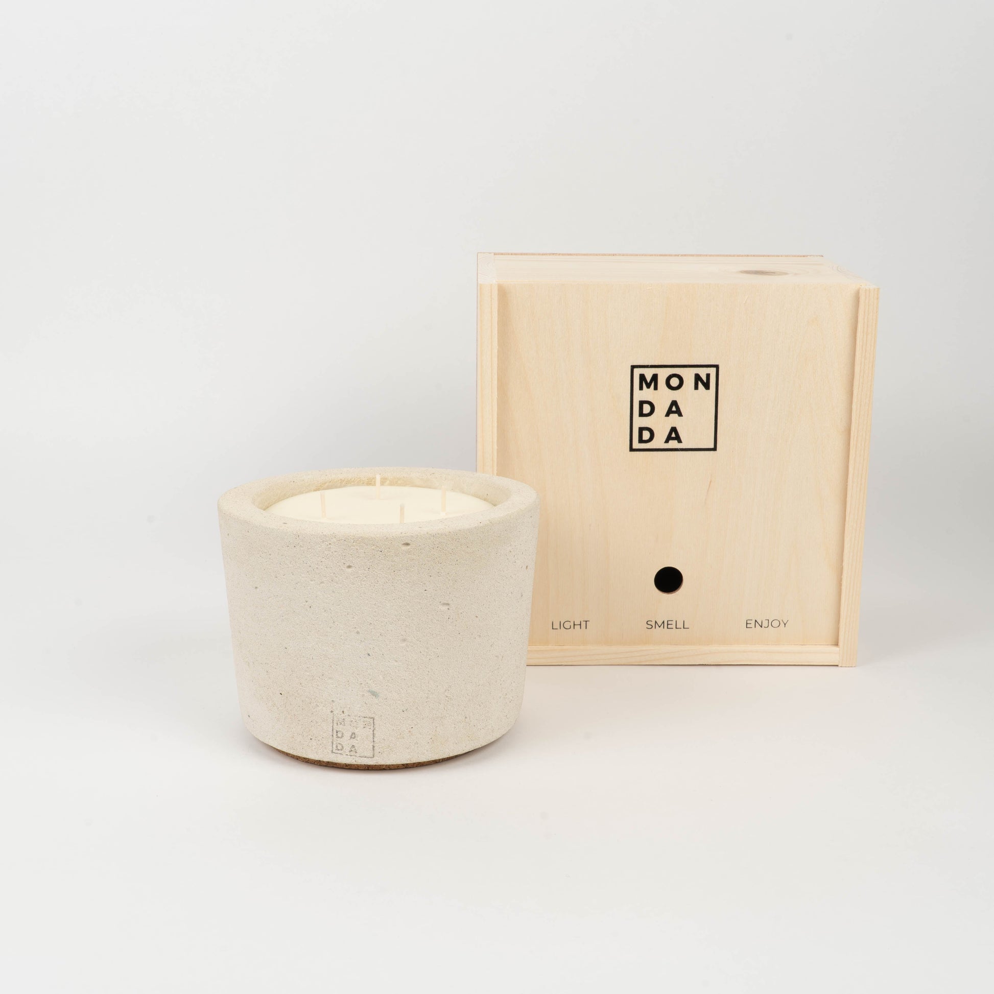 Handmade concrete fragrance candle for indoor use. All our indoor concrete candles come in a luxury wooden giftbox.