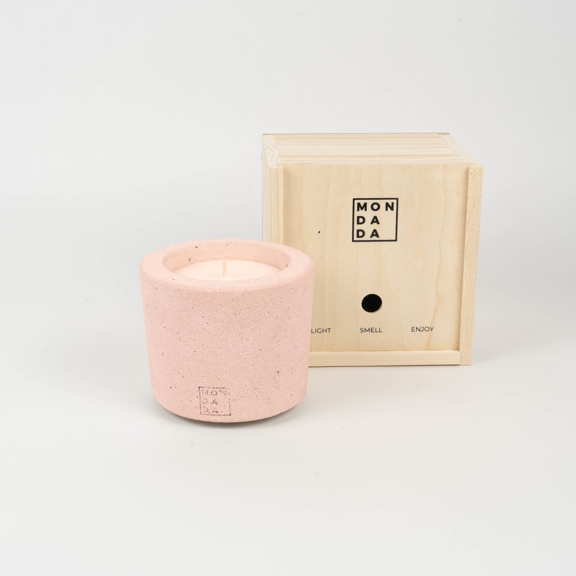 Handmade concrete fragrance candle for indoor use. All our indoor concrete candles come in a luxury wooden giftbox.